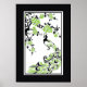 Black, green, white peacock and cherry blossoms poster