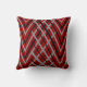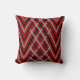 This contemporary decorative throw pillow features and simple yet elegant pattern of overlapping black and grey triangles on a dark red background. The image is repeated on the back.