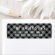 Holiday return address labels feature white modern custom text that can be personalized. Grey and black buffalo check / plaid patterned background included.