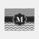 Show off your style in a fun way with this black and grey chevron and quatrefoil print monogram blanket.