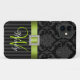 Ce Coque monogrammé noir et gris damassé iPhone 5 Coque-Mate a une photo de ce design intégré dans le couvercle en plastique dur. Le design est composé d'un motif damassé floral noir et gris, d'un ruban vert citron imprimé, d'un broche carré imprimé avec des diamants et d'une partie inférieure rayée noire et grise, motif où vous pouvez ajouter votre nom et monogramme initial dans de magnifiques polices de caractères. Cette couverture coque iPhone 5 est la meilleure façon d'accéder à votre iPhone 5. Soyez élégants et vilains en même temps. Conception par Elke Clarke © 2012. Graphiques sous licence pour utilisation.