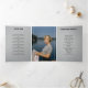 Modern trifold funeral program you can personalize with two photos of your loved one, one on the cover and one larger inside. Add obituary and order of service too in black fonts against a grey stone background, along with acknowledgements in white against black on the back. This elegant tri-fold program template is perfect for honouring a loved one at their funeral. The classic black, grey, and white design is simple and sophisticated, and you can easily customize it to include your loved one's photos, obituary, and service details.