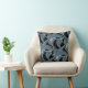 Black Grey on Slate Blue Swirling Art Circles Moti Throw Pillow