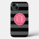 Black Grey Rugby Stripes with Hot Pink Monogram Case-Mate iPhone Case
