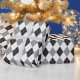 Black, grey and white argyle plaid pattern gift wrapping paper with light grey "stitching" extending diagonally across the diamond shapes - by katz_d_zynes