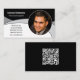 This business card design features a photograph on a black, grey, and white abstract background with all text on the front. A back holds a QR Code. Personalize the text fields, remove text or edit using the design tool to select a font style, size, and colour you prefer. Replace the placeholder photo with yours (a square photo works best) and add a link for your QR code. The code can send customers to a page of referrals, photographs or other business related link. You can also add this design to the business card magnet or one of the other products, where it fits appropriately, shown in the TRANSFER scroll bar on this page.