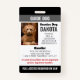 Vertical service dog badge for your guide dog in black. Easily customizable with an ID photo of the dog helping you in navigating the world, the dog's name and information (like breed, registration number, and microchip number), the name of the handler and your phone number and address in case you and your dog get separated. Additional text you can customize after your needs on both sides of the service dog ID badge, with a QR code and a logo template on the back.