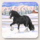 Black Gypsy Vanner Irish Cob Draught Horse In Snow Coaster