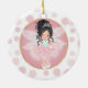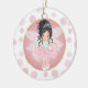 This design features a cute black haired Fairy with pink gown, magic wand and wings, flying on a super cute pink dot background.