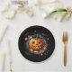 Black Halloween Background with Orange Pumpkin Paper Plate