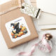 Black Halloween Kitten With Pumpkins & Witch's Hat Square Sticker
