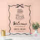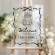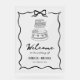 Elegant retro theme wedding welcome sign featuring hand drawn bow and cake.