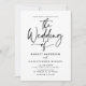 Invite family and friends to your wedding with this customizable wedding invitation. It features black simple hand-lettered calligraphy with classic typography. Personalize this calligraphy wedding invitation by adding your own event details. This script wedding invitation is perfect for any wedding theme and season.