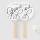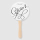 Modern and whimsical wedding paper fan featuring hand-lettered groom script. This wedding fan will be perfect the perfect way to cool off during the wedding ceremony. A matching bride fan is available.