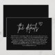 The "Black Handwritten Script Wedding Enclosure Card" blends modern sophistication with a personal, heartfelt touch. Featuring elegant handwritten-style script on a bold black background, this card adds a striking yet intimate way to share your wedding details. Perfect for conveying essential information like directions, accommodations, or special notes, its stylish design enhances any wedding suite. Ideal for couples who love contemporary elegance, this card leaves a memorable impression while keeping your celebration effortlessly chic.
