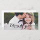 Whimsical thank you photo card featuring white hand-lettered script. A white font version is available. Rustic and elegant wedding thank you cards for your loved ones!