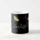 Decorated with happy, smiling yellow and black bumble bees. A chic black background. Personalize and add a name and your monogram, initials. The monogram in grey as a pattern in the background. The name is written in white with a modern hand lettered stylie script with swashes. To keep the swashes only delete the sample name, leave the spaces or emoji's in front and after the name.
