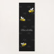 Decorated with happy, smiling yellow and black bumble bees. A chic black background. Personalize and add a name and your monogram, initials. The monogram in grey as a pattern in the background. The name is written in white with a modern hand lettered stylie script.