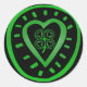Unique and contemporary design for St Patrick's Day with stylized big heart + clover (heart leaves inside the heart) on black round sticker. Matching postcard, postage and more... Don't forget the whole collection.
