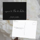 Black and white heart font save the date postcard.