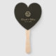 Black Heart Gold Wreath Monogram Wedding Program Hand Fan