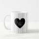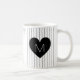 A customizable mug featuring a black heart and vertical stripes pattern. Personalize the mug by adding initials, perfect as a gift.