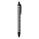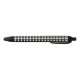 This pen features a repeating pattern of shapely black hearts.