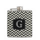 Black Herringbone Chevron Pattern with Monogram Hip Flask