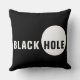 Black Hole text and a white circle or disc. Gifts, prints, t-shirts and other products for fun and good mood. Funny throw pillow. Customizable. You can change the image and you can change or delete the colour of the background. White background black circle is also available.