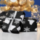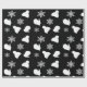 Black Holiday Mittens and Christmas Hats and Snowflakes Wrapping Paper