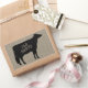 A cool country cow sticker with space for your text. Great for small country businesses, family farms and farmer's markets. Black cow silhouette on faux linen texture background. Visit Jenn's Doodle World for more stickers and office products featuring this Holstein cow.