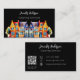 A black background decorated with colourful watercolored houses. Personalize and add your name and text on front.