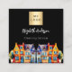 A black background decorated with colourful watercolored houses. Personalize and add your business logo, name and text on front.