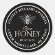 Personalize with your apiary name and address, honey net weight and any honey descriptors (pure, raw, clover, etc.). Vintage bee design in centre. White text and illustration on a black background. Common honey net weight conversions: 8oz (227g), 12oz (340g), 16oz (454g), 32oz (907g), 5lb (2.27kg).