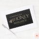 Black rectangle label with taupe text and frame. Customers will take a second look at your honey with this realistic honeybee sitting near the word "honey".