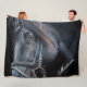 Up close black horse blanket with name template. Personalize for any teen girl who loves horses. Off-white text in the corner. Please don't change to the larger size as the image won't fit.