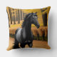 Black Horse in a Scenic Autumn Forest Path Throw Pillow