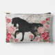 Black Horse Pink Rose French Script Feminine Zip Accessory Pouch