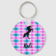 Black Horse Rearing Personalized Keychains - Pink and Aqua Blue abstract design for the background. Beautiful black horse rearing up above the personalized name of your choosing!