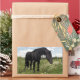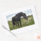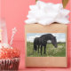 This photograph of a big black horse has a whimsical look to it, as if it was taken with a fish eye lens. The Friesian stallion's baroque neck is highlighted in this distorted photo.