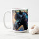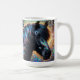 Graceful black horse adorned with a vibrant, multicolored mane set against a luminous glitter-filled backdrop, showcasing beauty, elegance, and uniqueness.
