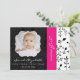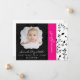 Black elegant damask, with modern floral. Elements include a vibrant pink trim and shadow photo frame.