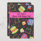 Celebrate a 60th birthday with a fun party with this invitation. All words are easy to customize. One side of the invitation has a design of colourful original art of random birthday cakes and cupcakes, the word art "happy birthday", balloons, candles, streamers and dots on a black background. A fuchsia hot pink strip has the customizable words "You're invited to", a personalized name and "60th birthday party". The other side has all the fields for your party. The border is the same art with a hot pink outlined black area for all the information to make it your own invitation. Easy to customize for other events.