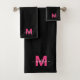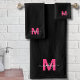 Black Hot Pink Modern Script Name Monogram Bath Towel Set