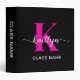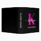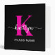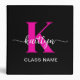This simple, elegant black 2" capacity 3 ring binder with your school subject, your first name in a trendy script font in white, your first initial in a modern cap font in hot pink is perfect for keeping your school work and notes organized. It's stylish and trendy and yet very classic. Perfect for using in high school or college. It comes in many colorways so you can have a colour deisignated for each class your taking.