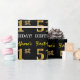 This wrapping paper design features a message like "First-Name’s 51st BIRTHDAY!", with the "51st" having a faux/imitation gold-like colour appearance. The name can be customized, and the background is coloured black. It could perhaps be used when wrapping gifts being given for somebody’s fifty first birthday. [~Z0000177]