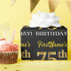 This wrapping paper design features a message like "FirstName’s 75th BIRTHDAY!", with the "75th" having a faux/imitation gold-like colour appearance. The name can be customized, and the background is coloured black. It could perhaps be used when wrapping gifts being given for somebody’s seventy fifth birthday. [~Z0000177]