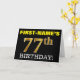This birthday greeting card design features a message like "FIRST-NAME’S 77th BIRTHDAY!", with the "77th" having a faux/imitation gold-like colour appearance. The recipient’s name on the front can be personalized, and the front background is coloured black. It also features a customizable birthday greeting message on the inside. A birthday greeting card like this could perhaps be given to somebody in celebration of their seventy seventh birthday. [~Z0000183]