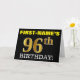This birthday greeting card design features a message like "FIRST-NAME’S 96th BIRTHDAY!", with the "96th" having a faux/imitation gold-like colour appearance. The recipient’s name on the front can be personalized, and the front background is coloured black. It also features a personalized birthday greeting message on the inside. A birthday greeting card like this could perhaps be given to somebody in celebration of their ninety sixth birthday. [~Z0000183]