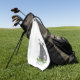 This cute monogram golf towel features a stylish black watercolor golf bag filled with clubs, surrounded by a touch of green grass. The design cleverly incorporates a simple serif font initial monogram on the bag in white, standing out against the dark background. Below the monogram, the full name is elegantly displayed in script typography, adding a personal touch. The monogram can be customized to any colour. Perfect for the lady golfer in your life, this fun and stylish golf towel makes a great gift for Christmas, birthdays, Mother’s Day, or any special occasion. Personalized Initial Name Monogram Golf Towel Black Watercolor Golf Bag Gift For Her Script Font.